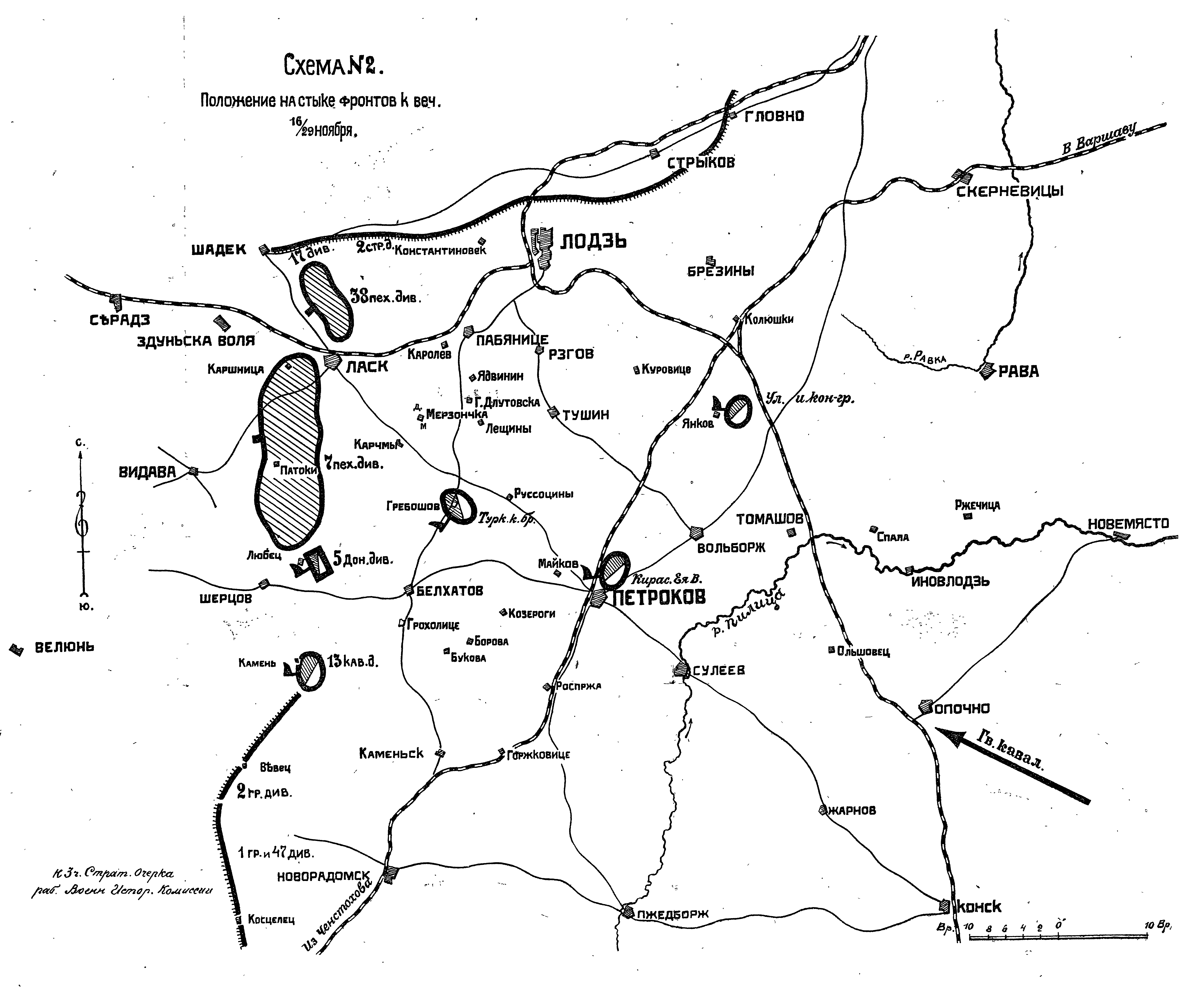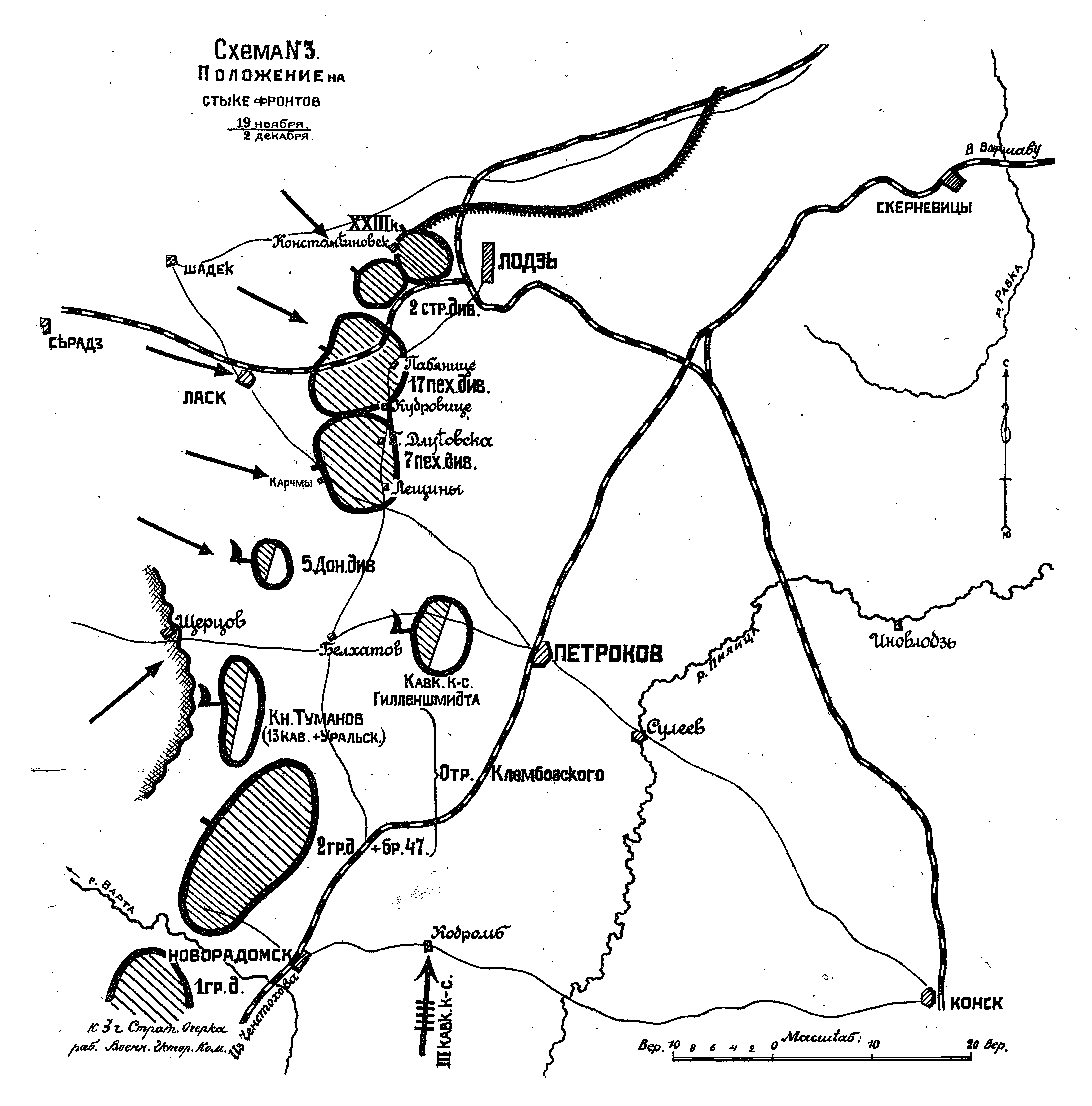 К 12 (25) ноября кризис в районе Брезины-Колюшки-Тушин миновал. 2. и 5. армии сами перешли в наступление и к 15 (28) достигли фронта Стрыков-Шадек.